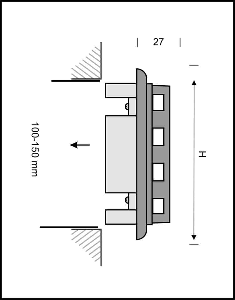 Ventilatierooster vervaardigd van kunststof, geschikt voor montage in buis. Afsluitbaar, voor toe- en afvoer van lucht. Instelbaar, geschikt voor buis 100 t/m 150 mm.