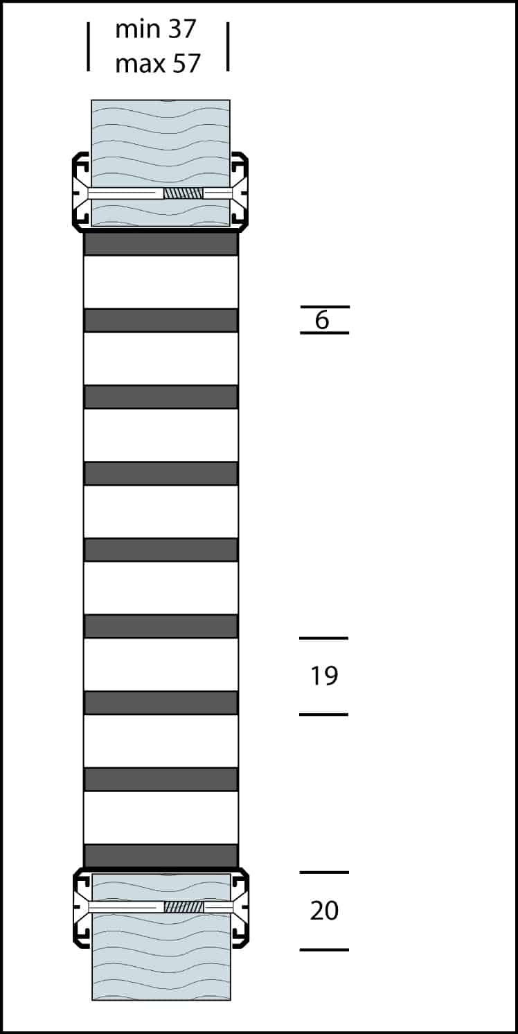 Deurroosters vervaardigd van grijze kunststof lamellen, welke zijn gevuld met een materiaal dat bij een temperatuur van 120° Celsius opzwelt en op die manier de toevoer van zuurstof verhinderd, zodat er geen trekgat ontstaat. Voorzien van geanodiseerd aluminium kader. Het rooster dient bevestigd te worden met vuurvaste kit G8-K310.