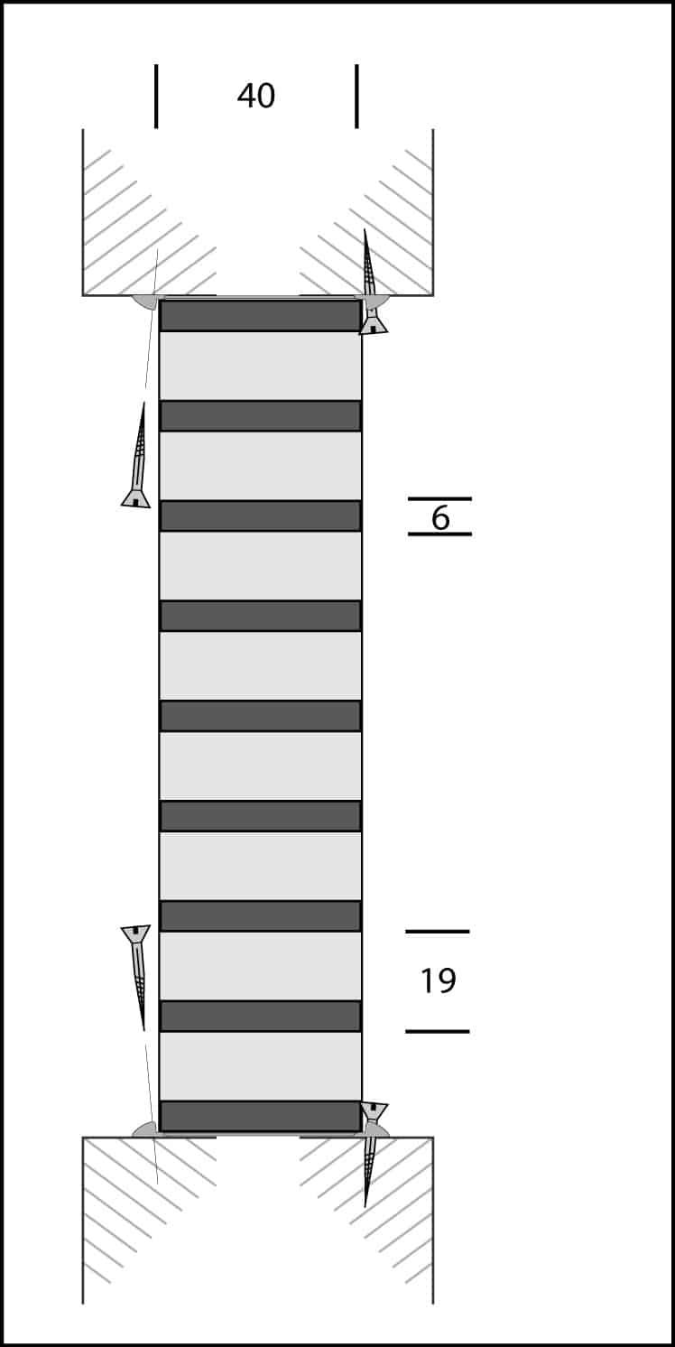 Lamellenroosters vervaardigd van grijze kunststof lamellen, welke zijn gevuld met een materiaal dat bij een temperatuur van 120°c opzwelt en op die manier de toevoer van zuurstof verhinderd, zodat er geen trekgat ontstaat. PVC-profielen met vulling op basis van Natrium Silicaat. Het rooster dient bevestigd te worden met vuurvaste kit G8-K310. Luchtdoorlaat ca. 86%.