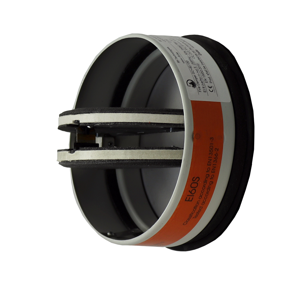 Automatisch sluitende, ronde, brandwerende vlinderklep.
