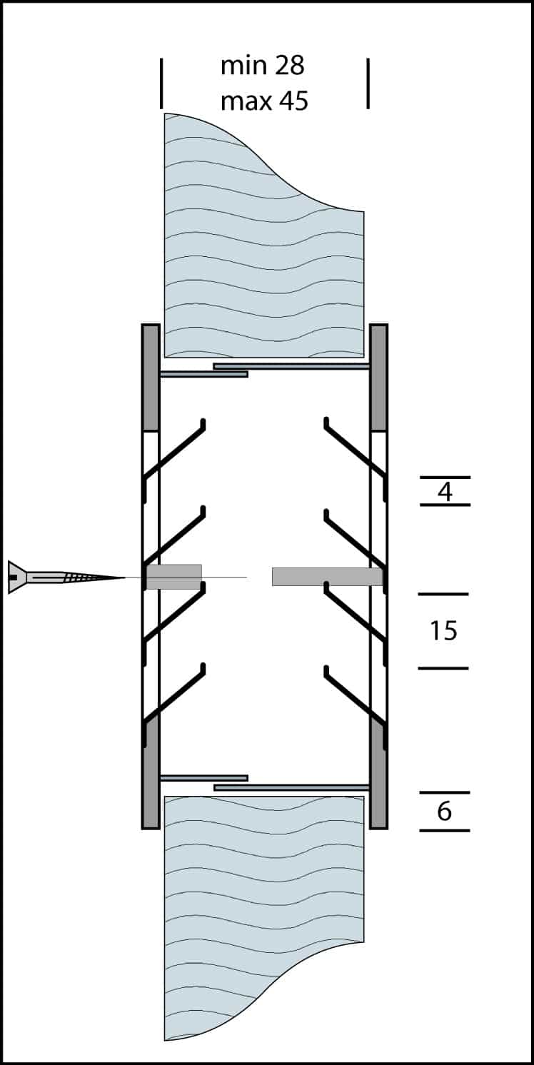 Het rooster is voorzien van een contradeel, bevestiging van het contradeel d.m.v. 3 schroeven.