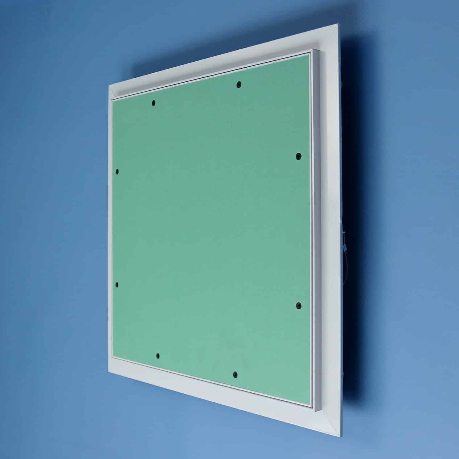 Inspectieluik vervaardigd van aluminium. Toepasbaar als plafondluik. Luik afgewerkt met gipsplaat.