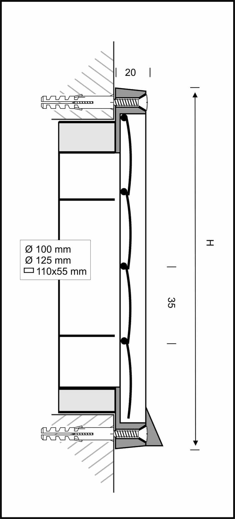 Geschikt voor buis Ø 100mm, Ø 125 mm en vlakkanaal 110 x 55 mm.