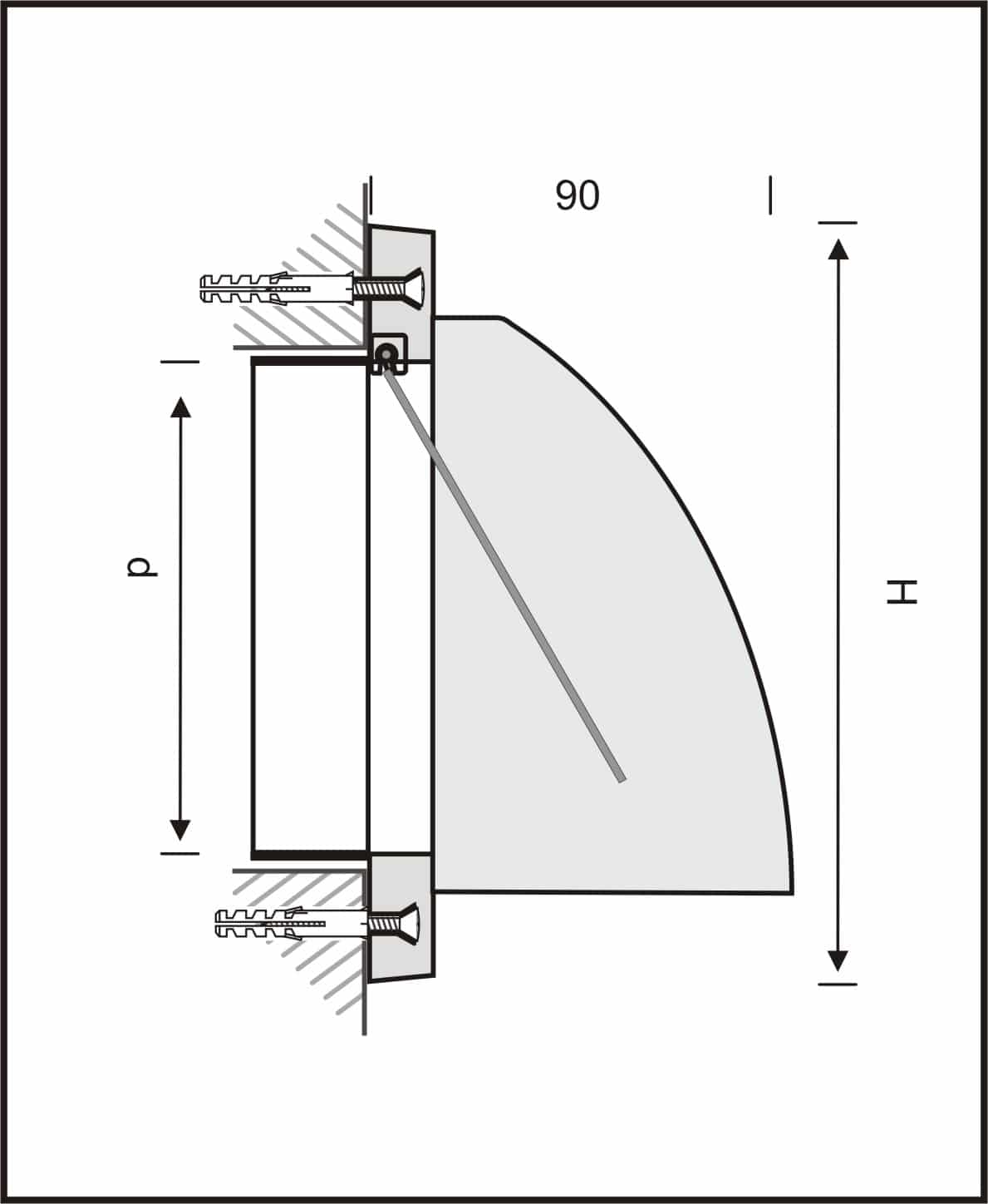 Kunststof gevelkap met klep welke zich opent bij overdruk.