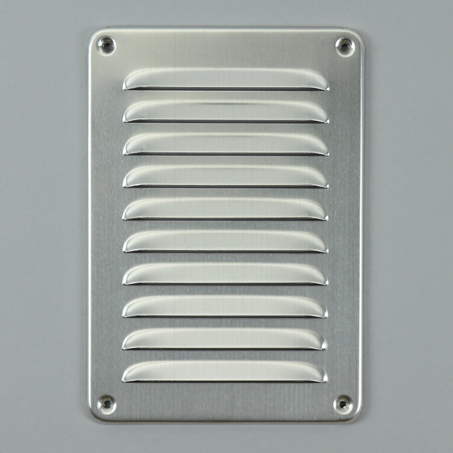 - Als buitenrooster, regeninslagwerend, voor toe- en afvoer van lucht. Voor bijbehorende afsluitbare roosters, zie schuifroosters.