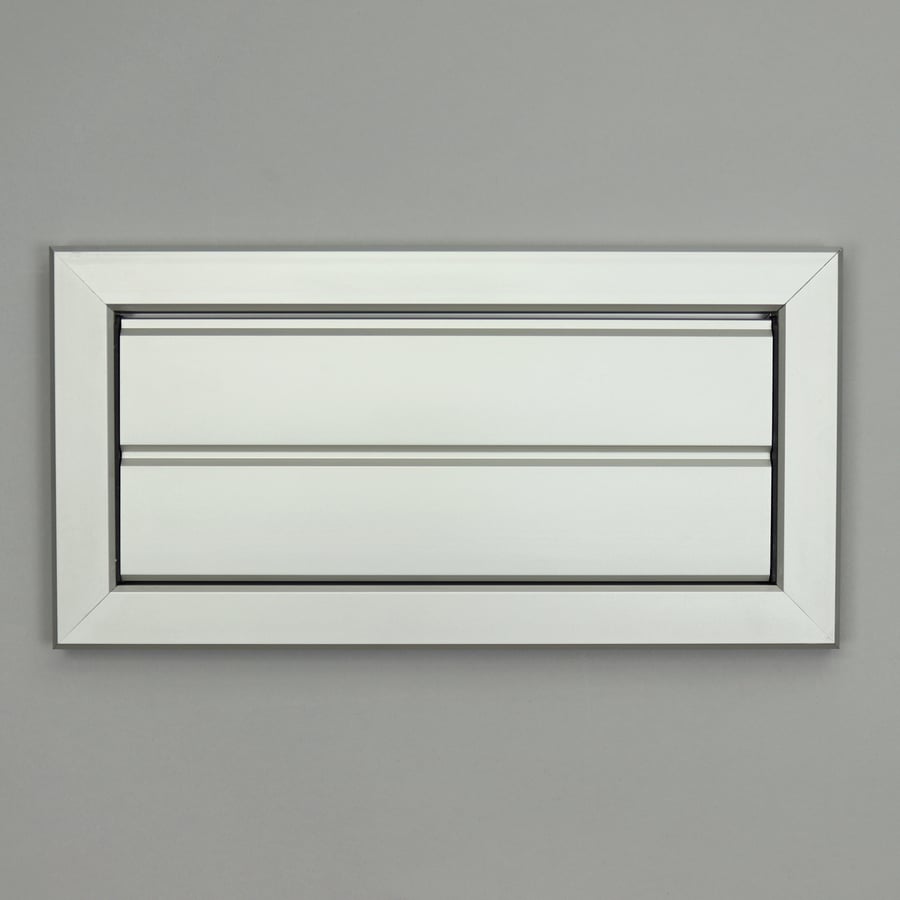 Overdrukrooster vervaardigd van aluminium extrusieprofielen, opbouw. Dit rooster heeft beweegbare lamellen welke zich bij overdruk openen.