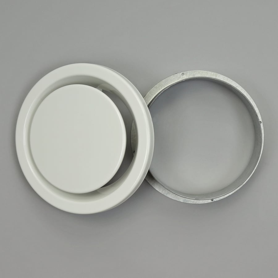 13-4612W Afzuigventiel, rond, staal, buis 125 mm wit, RAL 9016