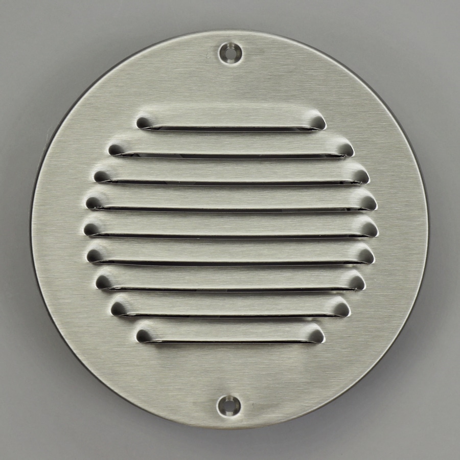 Schoepenrooster met omgezette rand.Fraaie vormgeving passend bij vele architectuur- stijlen. Rond model, voorzien van een buisaansluiting met stalen klemveren voor eenvoudige en snelle montage (bevestiging met schroeven is ook mogelijk).
