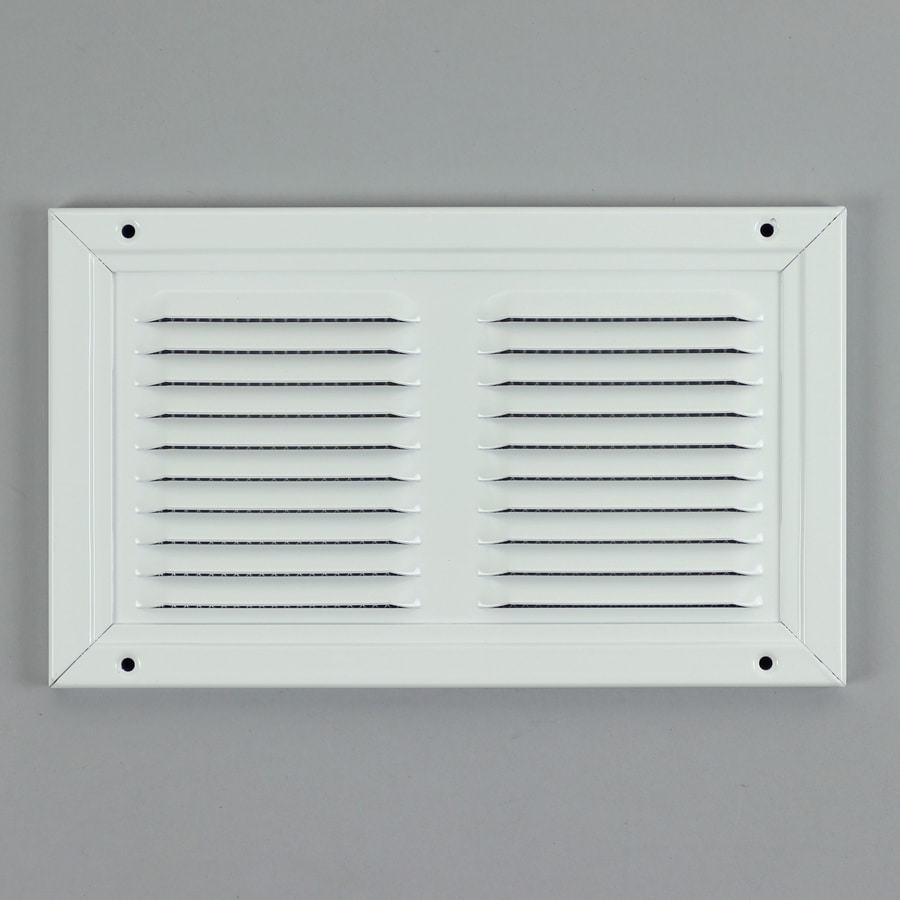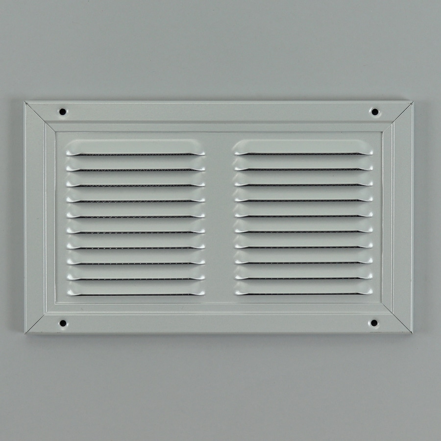 - Als buitenrooster, regeninslagwerend, voor toe- en afvoer van lucht. Voor bijbehorende afsluitbare roosters, zie schuifroosters.