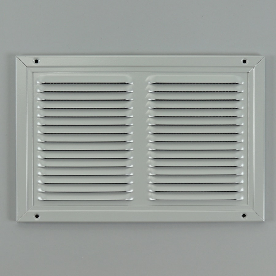 - Als buitenrooster, regeninslagwerend, voor toe- en afvoer van lucht. Voor bijbehorende afsluitbare roosters, zie schuifroosters.