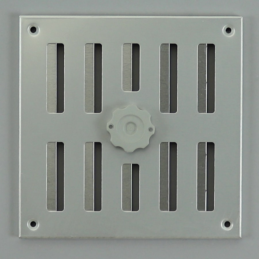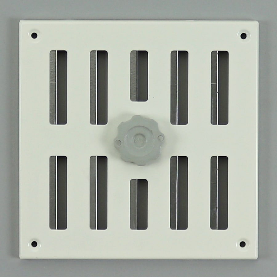 Afsluitbaar rooster, opbouw. Rooster is voorzien van een draaiknop geschikt voor een eventuele koordbediening.
