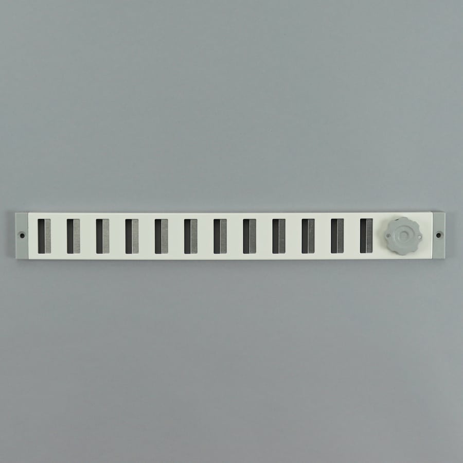 Afsluitbaar rooster, opbouw. Rooster is voorzien van een draaiknop geschikt voor een eventuele koordbediening.