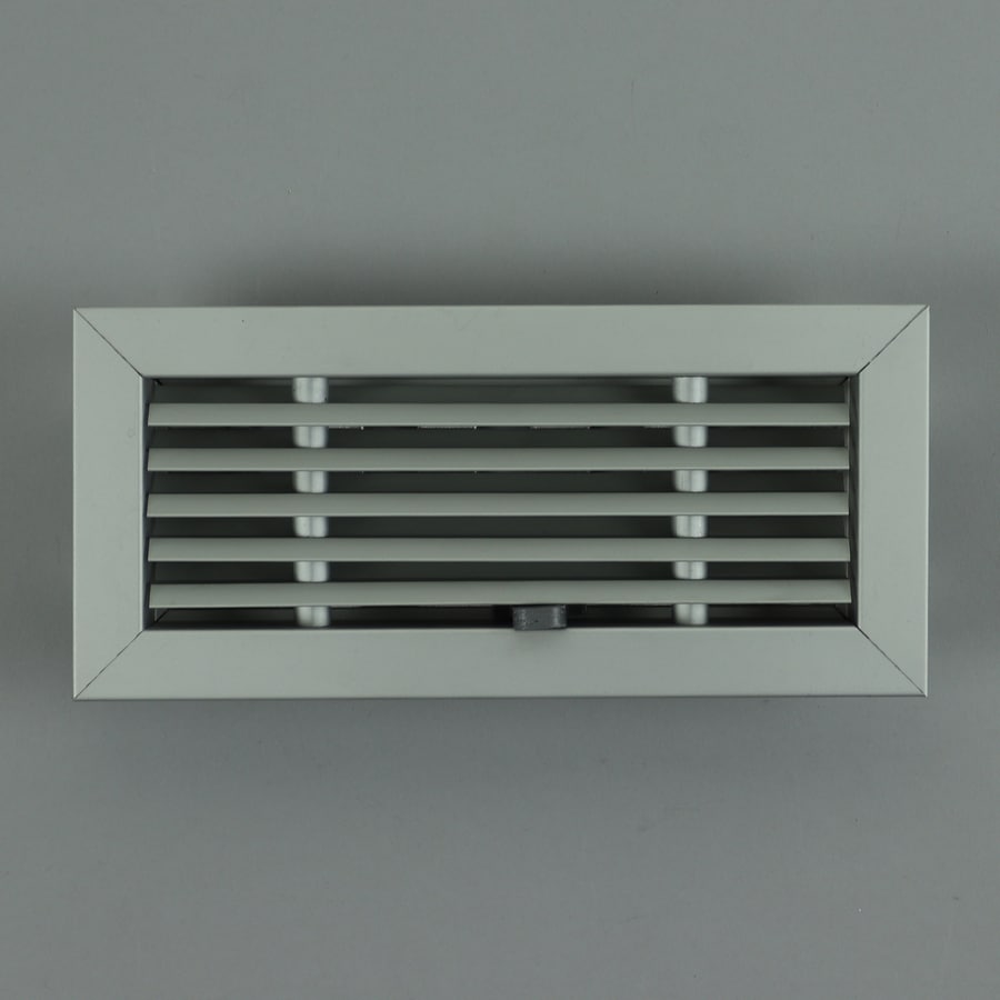 Afsluitbaar rooster vervaardigd van aluminium extrusieprofielen, inbouw. Rooster is voorzien van een schuifknop.