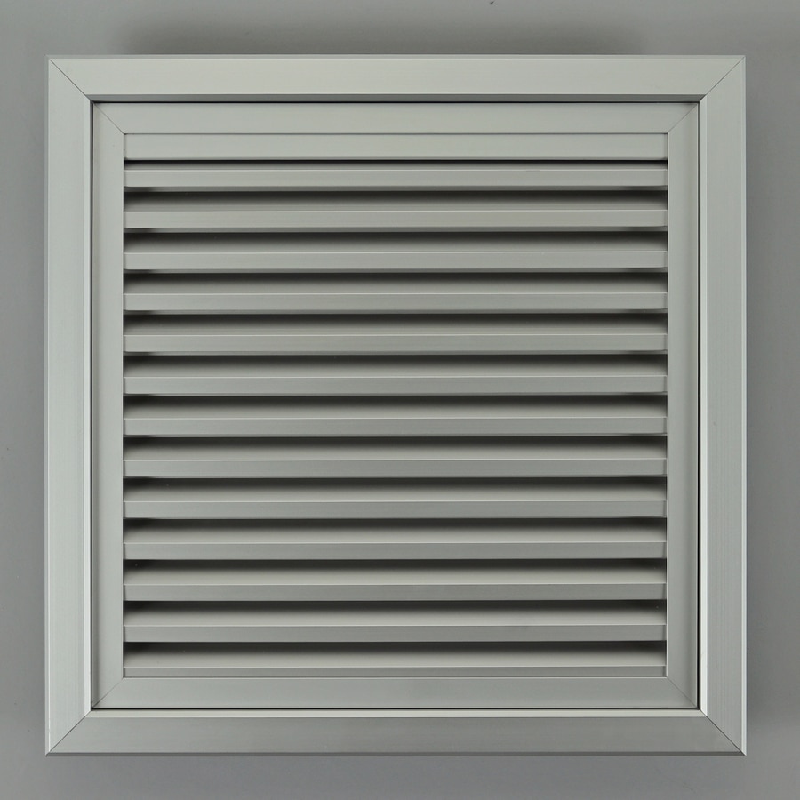 Lamellenrooster vervaardigd van aluminium extrusieprofielen. Inbouw, V-lamellen. Combinatie tussen ventilatierooster en inspectieluik, speciaal geschikt voor whirlpools, ventilatieschachten etc. Na monteren van het kader (schroeven en/of kitten), is het lamellenrooster er eenvoudig in te plaatsen. Vastklikken, klaar. Binnendeel uitneembaar.