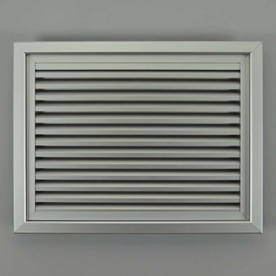 Lamellenrooster vervaardigd van aluminium extrusieprofielen. Inbouw, V-lamellen. Combinatie tussen ventilatierooster en inspectieluik, speciaal geschikt voor whirlpools, ventilatieschachten etc. Na monteren van het kader (schroeven en/of kitten), is het lamellenrooster er eenvoudig in te plaatsen. Vastklikken, klaar. Binnendeel uitneembaar.