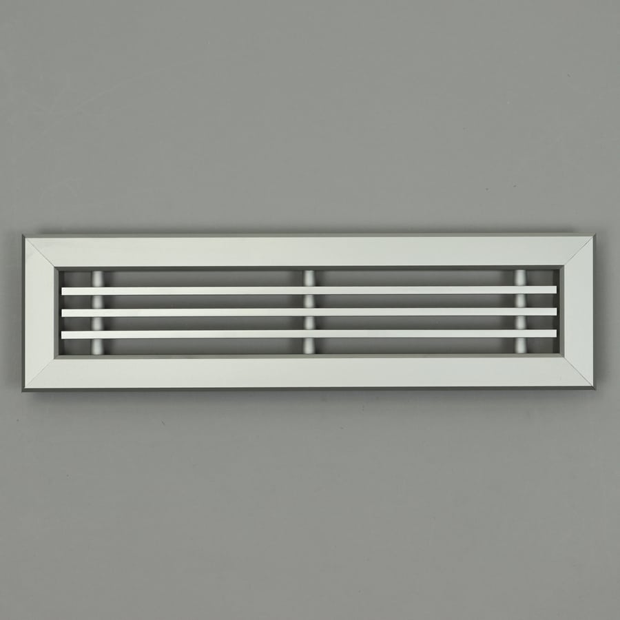 Staafrooster vervaardigd van aluminium extrusieprofielen, voorzien van horizontale rechte staven.