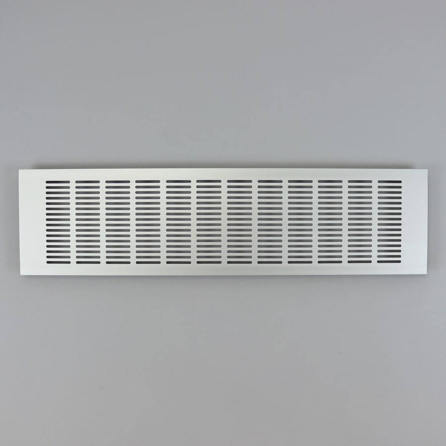 • Geschikt voor vele toepassingen, bijvoorbeeld voor plaatsing in werkbladen boven radiatoren, in keukenplinten voor ventilatie van inbouwapparatuur, deuren etc. Vaste hoogtematen, 40 / 60 / 80 / 100 / 130 / 150 mm hoog.