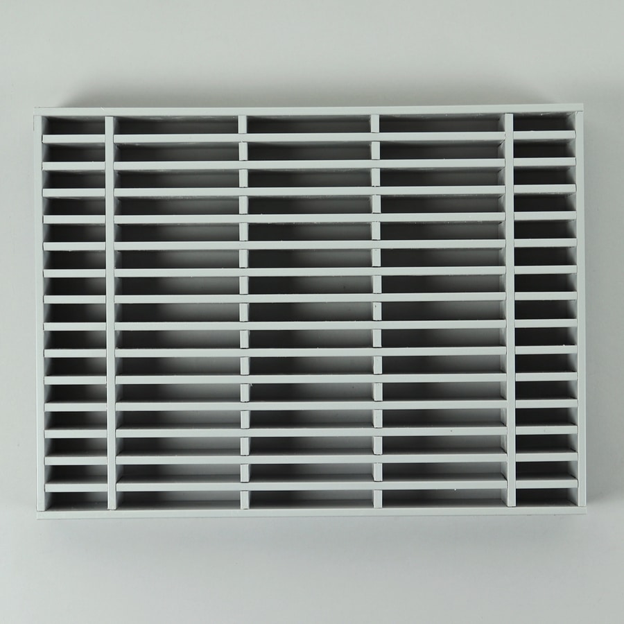 Roosters vervaardigd van grijze kunststof lamellen, welke zijn gevuld met een materiaal dat bij een temperatuur van 120°c opzwelt en op die manier de toevoer van zuurstof verhinderd, zodat er geen trekgat ontstaat. PVC-profielen met vulling op basis van Natrium Silicaat. Het rooster dient bevestigd te worden met vuurvaste kit G8-K310 en schroeven.