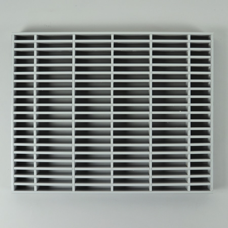 Roosters vervaardigd van grijze kunststof lamellen, welke zijn gevuld met een materiaal dat bij een temperatuur van 120°c opzwelt en op die manier de toevoer van zuurstof verhinderd, zodat er geen trekgat ontstaat. PVC-profielen met vulling op basis van Natrium Silicaat. Het rooster dient bevestigd te worden met vuurvaste kit G8-K310 en schroeven.
