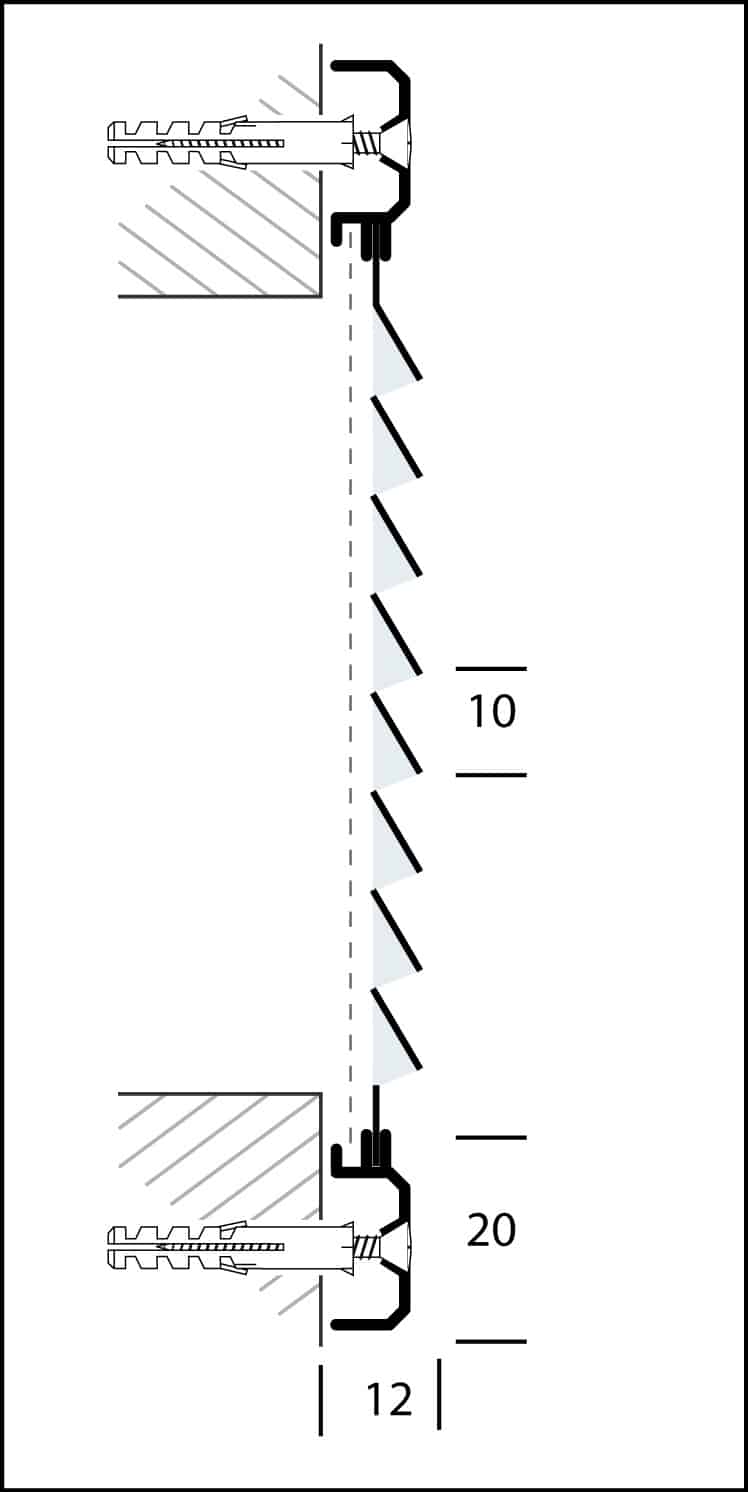 Schoepenrooster vervaardigd van aluminium, omkaderd, opbouw.