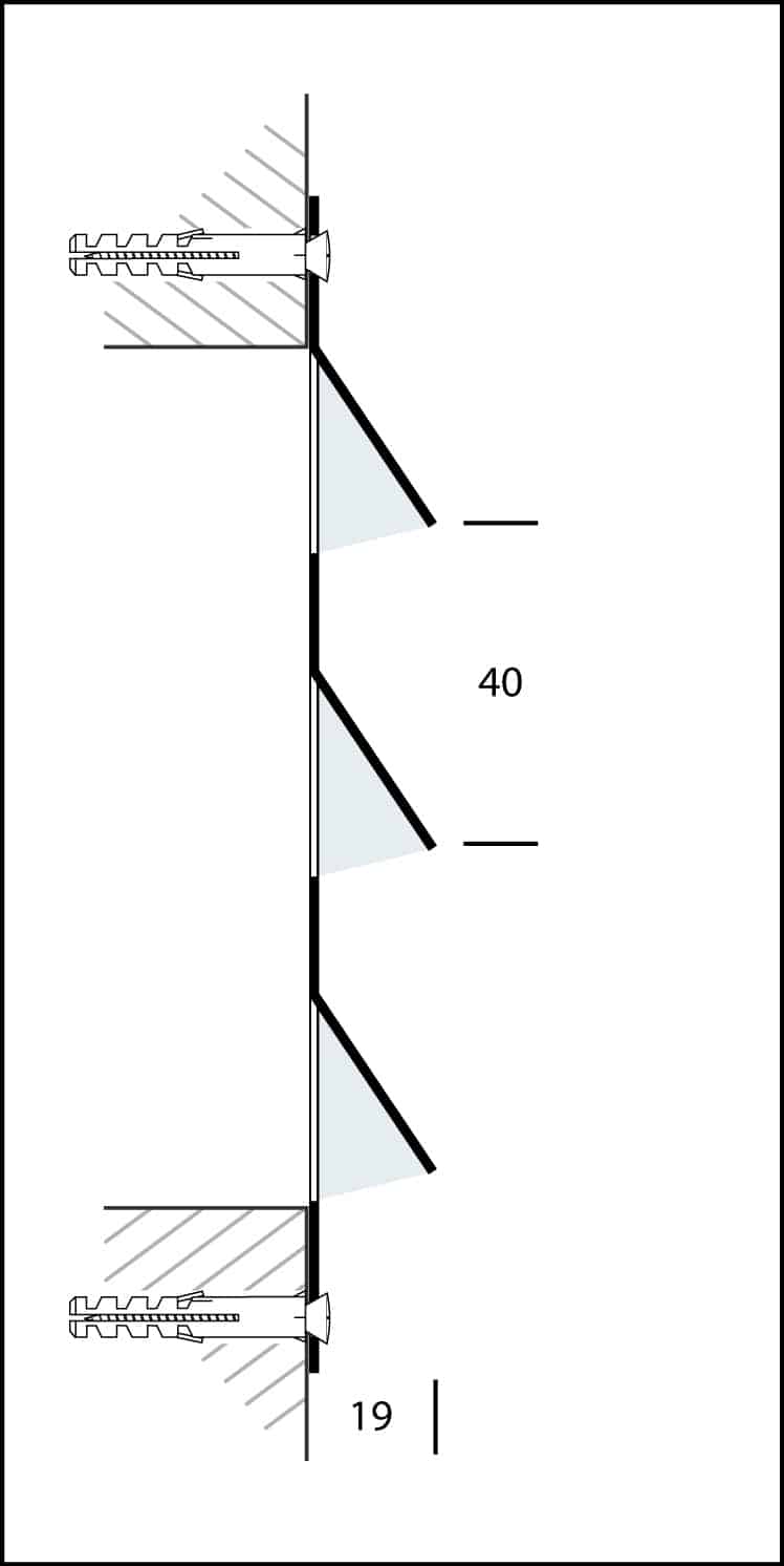 Schoepenrooster, vervaardigd van aluminium, opbouw. Met grote schoepen, breedte 200mm.​