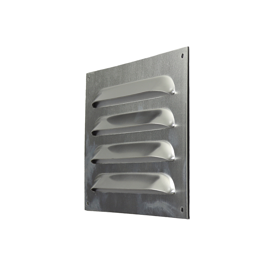 Als buitenrooster, voor toe- en afvoer van ventilatielucht, regeninslagwerend. Voor bijpassende binnenroosters, zie ventilatieplaten.