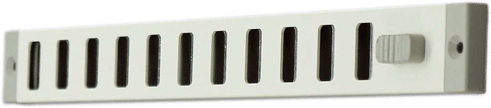 Afsluitbaar rooster vervaardigd van aluminium, opbouw. Rooster is voorzien van een draaiknop geschikt voor een eventuele koordbediening (hoogte 30mm is voorzien van een schuifje, koord niet mogelijk). Zie voor overige maten ook rubriek 3A, schuifroosters met gaas.