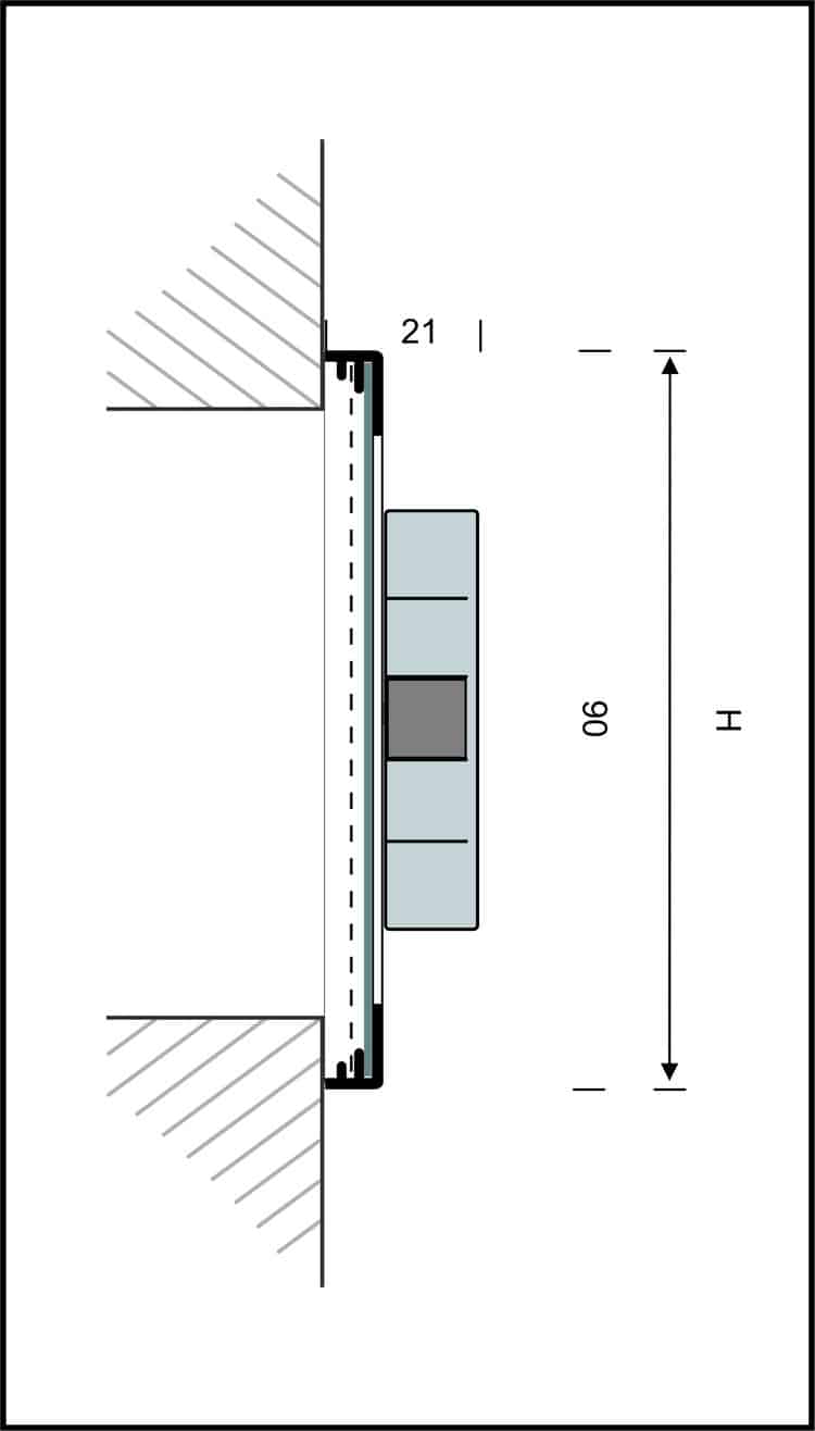 Afsluitbaar rooster vervaardigd van aluminium, opbouw, 90 mm hoog. Rooster is voorzien van een draaiknop, geschikt voor een eventuele koordbediening.