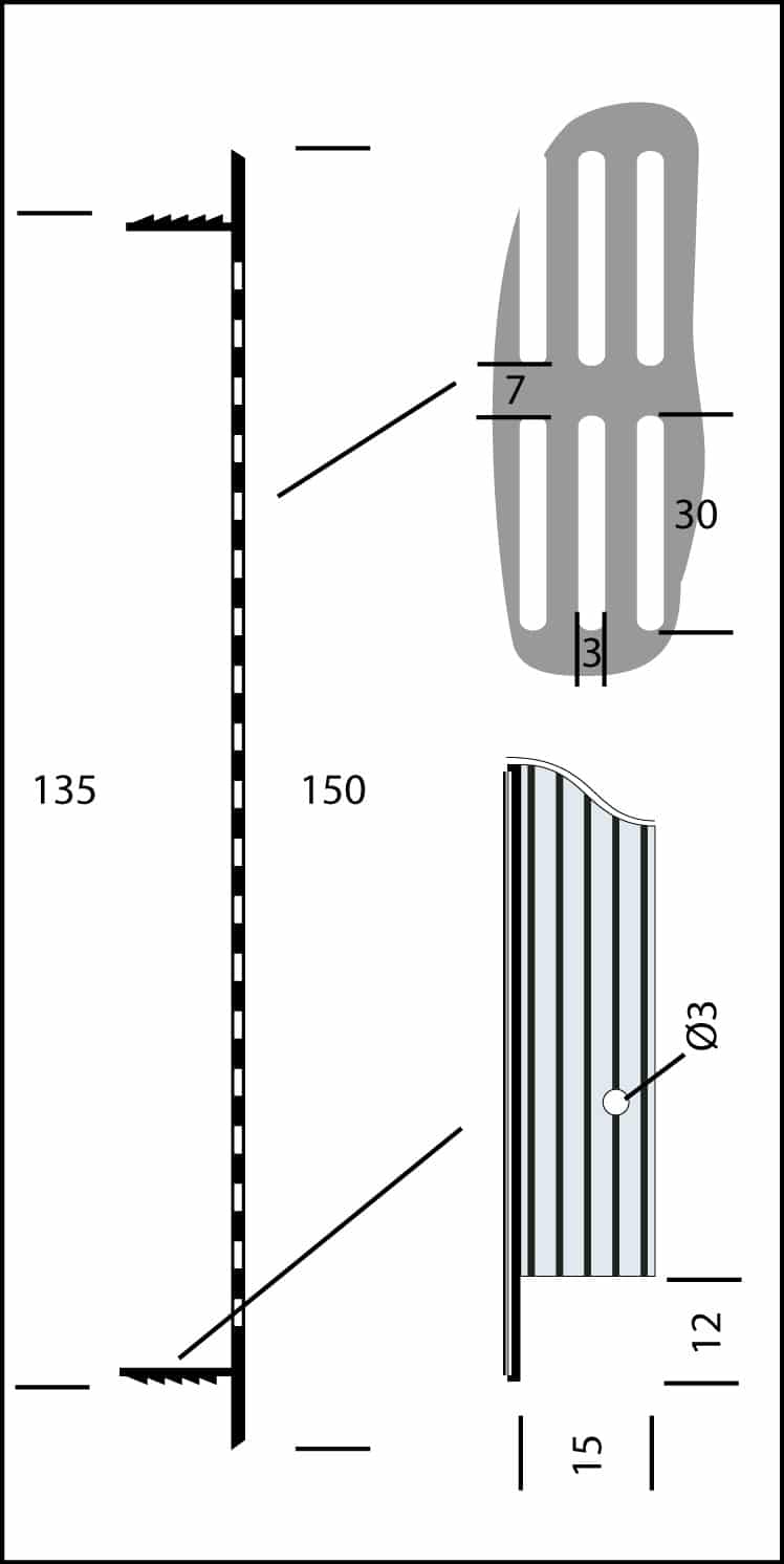 500 mm x 150 mmG61-5015 Ventilatiestrip, aluminium, extrusie, 150 mm