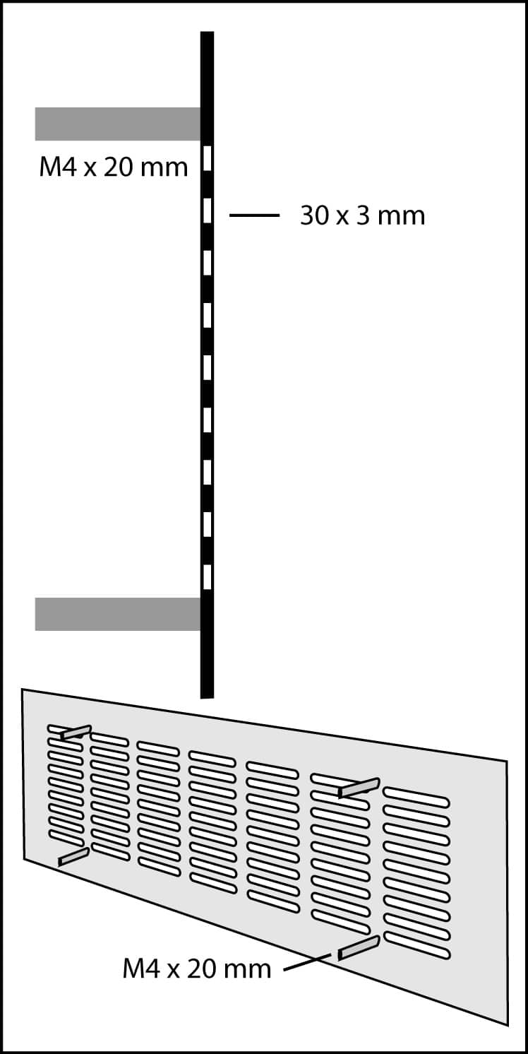 Geschikt voor vele toepassingen, bijvoorbeeld voor plaatsing in werkbladen boven radiatoren, in keukenplinten voor ventilatie van inbouwapparatuur, deuren etc.